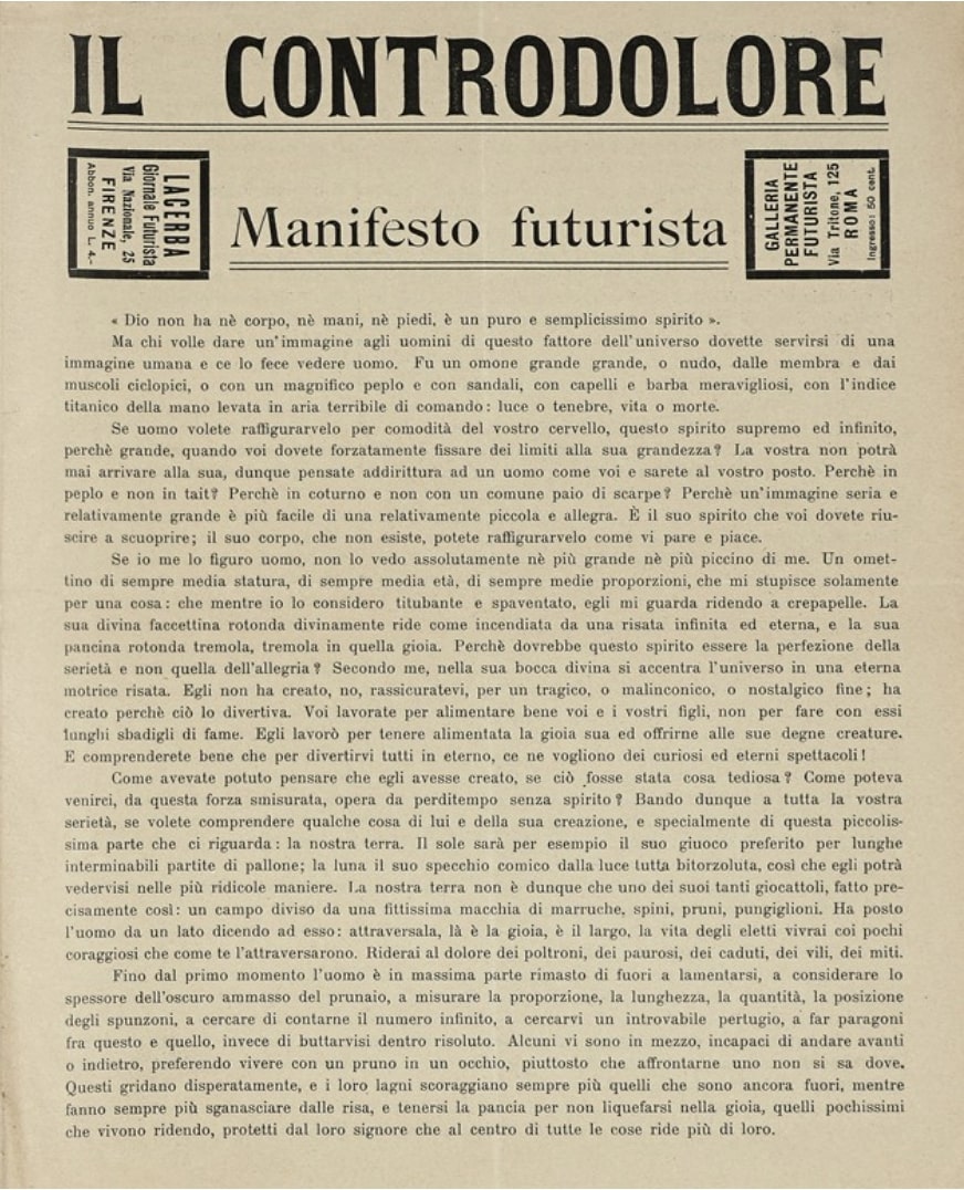 Title of Work: Il Controdolore. Manifesto futurista