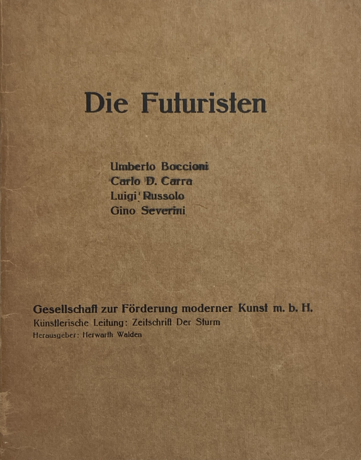 Notes: First edition of the exhibition catalogue. Includes the “Manifest des Futurismus” by Marinetti. Catalogue descriptions originally written in English by Robert René Meyer-Sée. With seven plates.
